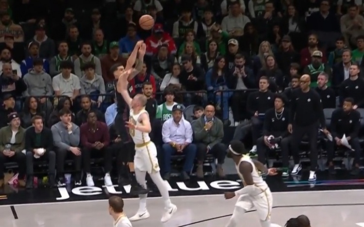 GIF-小波特干拔三分踢腿绊倒豪泽,进攻犯规